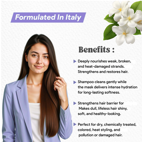 Enriched with a Powerful Blend of Sea Buckthorn Oil, Hibiscus, jasmine, Sunflower Oil, Murumuru Butter, and Plant Keratin Protein, The Shampoo Gently Removes Impurities without Stripping Moisture, The Conditioner Smoothens and Strengthens Weakened Strands, and The Mask Delivers Intense Repair and Hydration to Severely Damaged Hair.