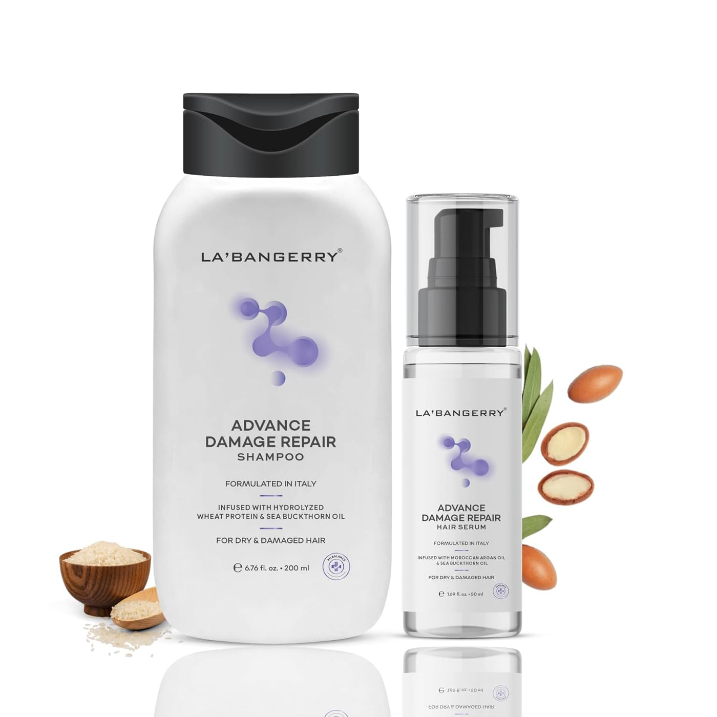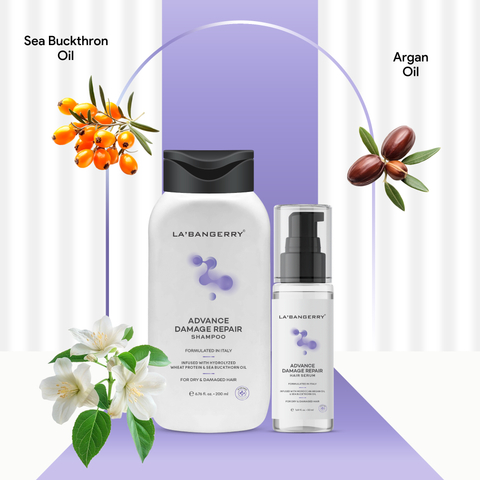 Restore strength and shine to damaged hair with the LA’BANGERRY Advance Damage Repair Shampoo & Serum Combo, a powerful two-step solution designed to cleanse, repair, and protect dry, frizzy, and chemically treated hair. This combo works from the first wash to improve hair texture and reduce visible damage.