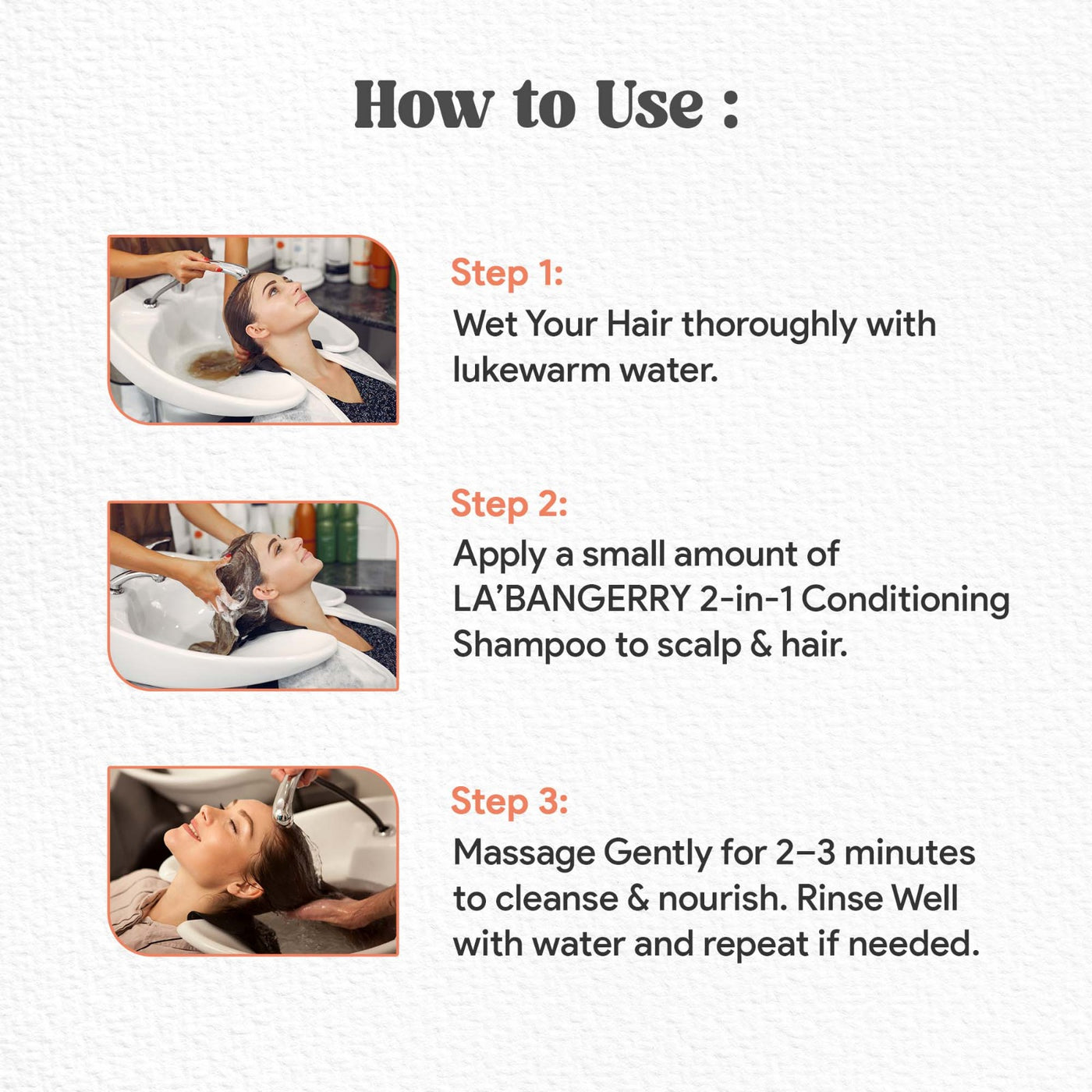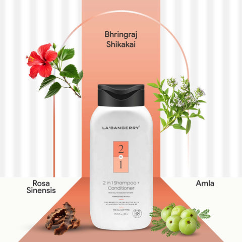 The LA'BANGERRY 2 IN 1 Shampoo is designed to simplify your haircare routine without compromising results. Infused with the power of Bhringraj, Shikakai, Rice Water, Vitamin B5, Hyaluronic Acid, and Rosa Sinensis, it gently cleanses while deeply conditioning your hair in a single step. Unlike traditional shampoos that strip away natural oils, this 2 IN 1 formula nourishes, repairs, and strengthens hair strands from root to tip. Bhringraj and Shikakai improve scalp health, Rice Water enhances shine and elasticity, while Vitamin B5 and Hyaluronic Acid lock in moisture for smooth, frizz-free hair. Rosa Sinensis helps reduce hair fall and promotes thickness. Perfect for those who want salon-like results with minimal effort, the LA'BANGERRY 2 IN 1 Shampoo leaves your hair strong, soft, and radiant every wash.