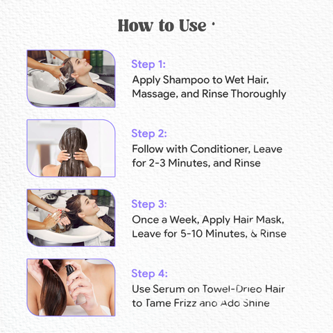 Enriched with a powerful blend of Sea Buckthorn Oil, Hibiscus, Jasmine, Sunflower Oil, Murumuru Butter, and Plant Keratin Protein, the shampoo gently cleanses while strengthening weak strands, the conditioner smoothens and detangles, the hair mask delivers deep repair and hydration, and the serum seals in moisture, controls frizz, and adds lasting shine.
