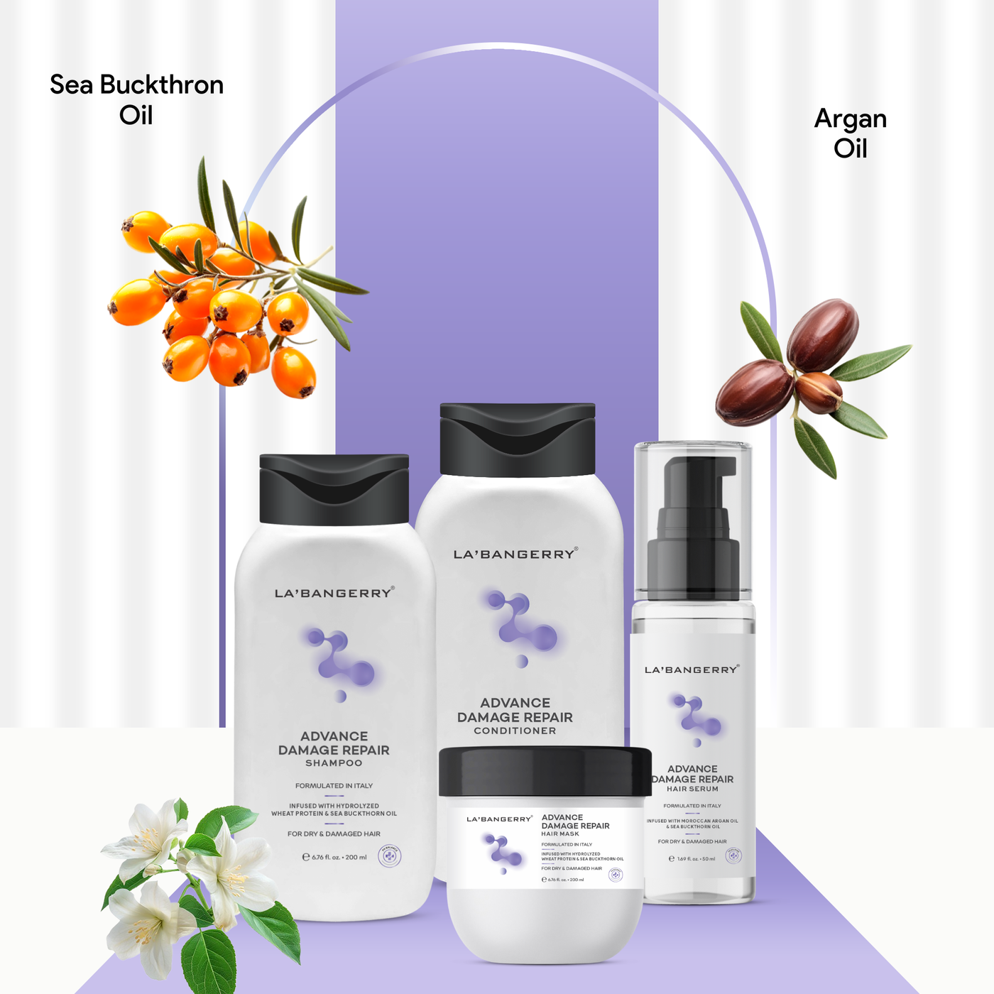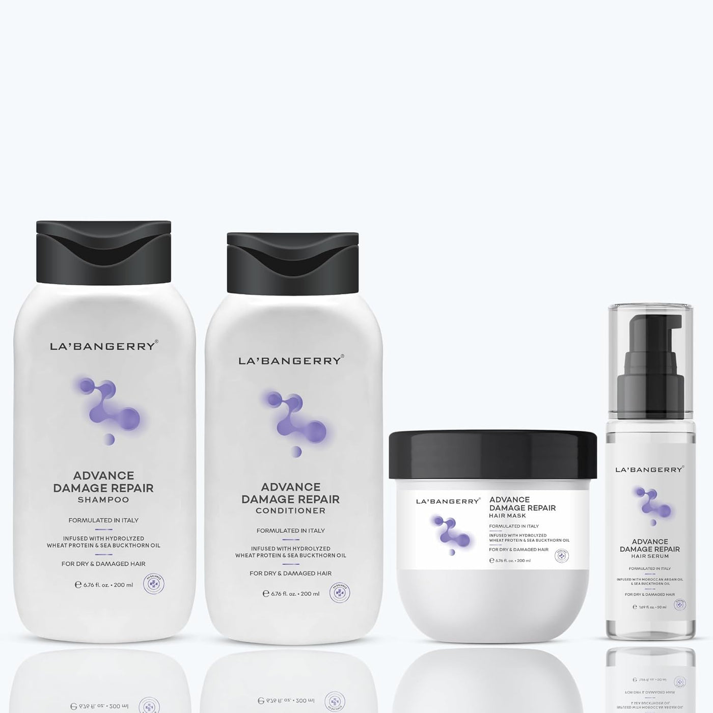 Repair, restore, and revive damaged hair with the LA’BANGERRY Advance Damage Repair Complete Hair Care Kit, a 4-step professional routine designed for dry, frizzy, and chemically treated hair. This advanced system works together to cleanse, deeply nourish, repair damage, and protect hair from daily stress.