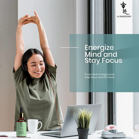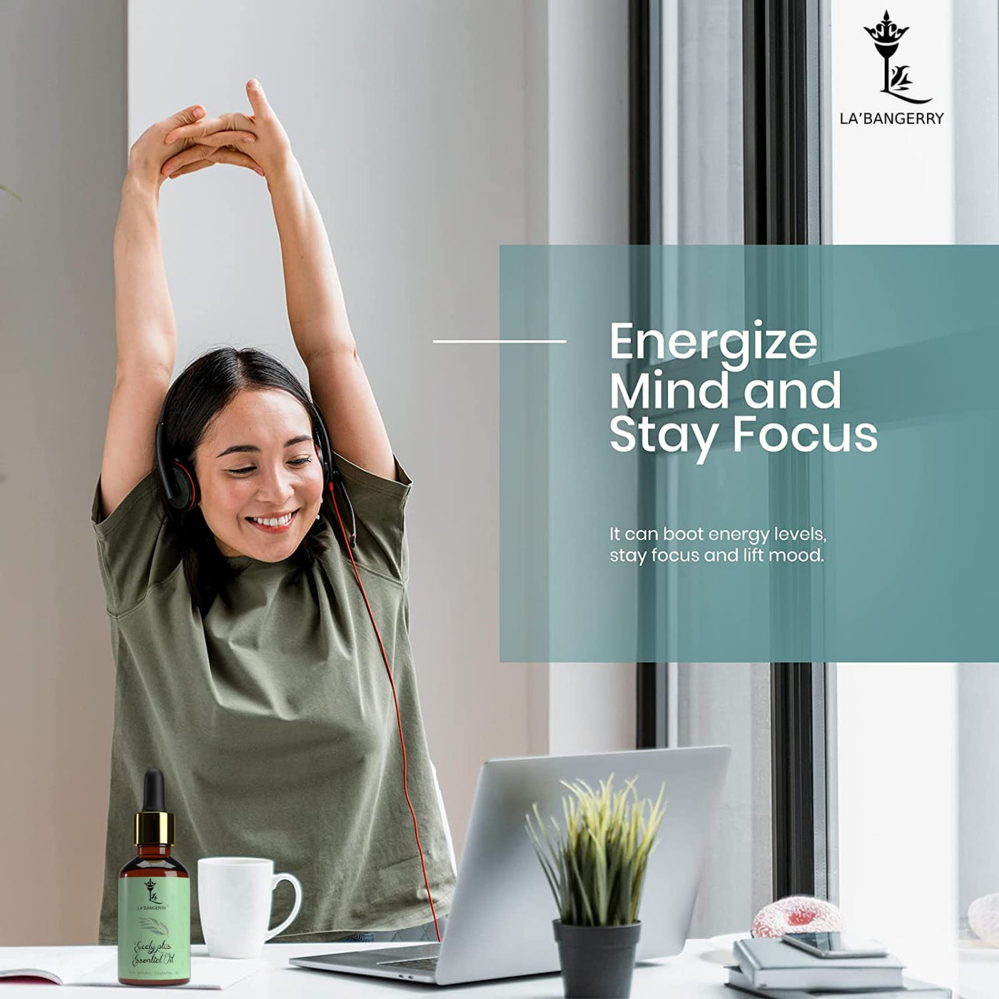 Eucalyptus Essential Oil Helps Purify The Skin, Control Excess Oil, and Reduce Breakouts, Making It Ideal for Acne-Prone Skin. Its Cooling Effect Soothes Skin Irritation and Scalp Dryness, While Promoting Healthy Hair Growth. In Aromatherapy, It Uplifts The Mood, Eases Stress, and Enhances Focus.