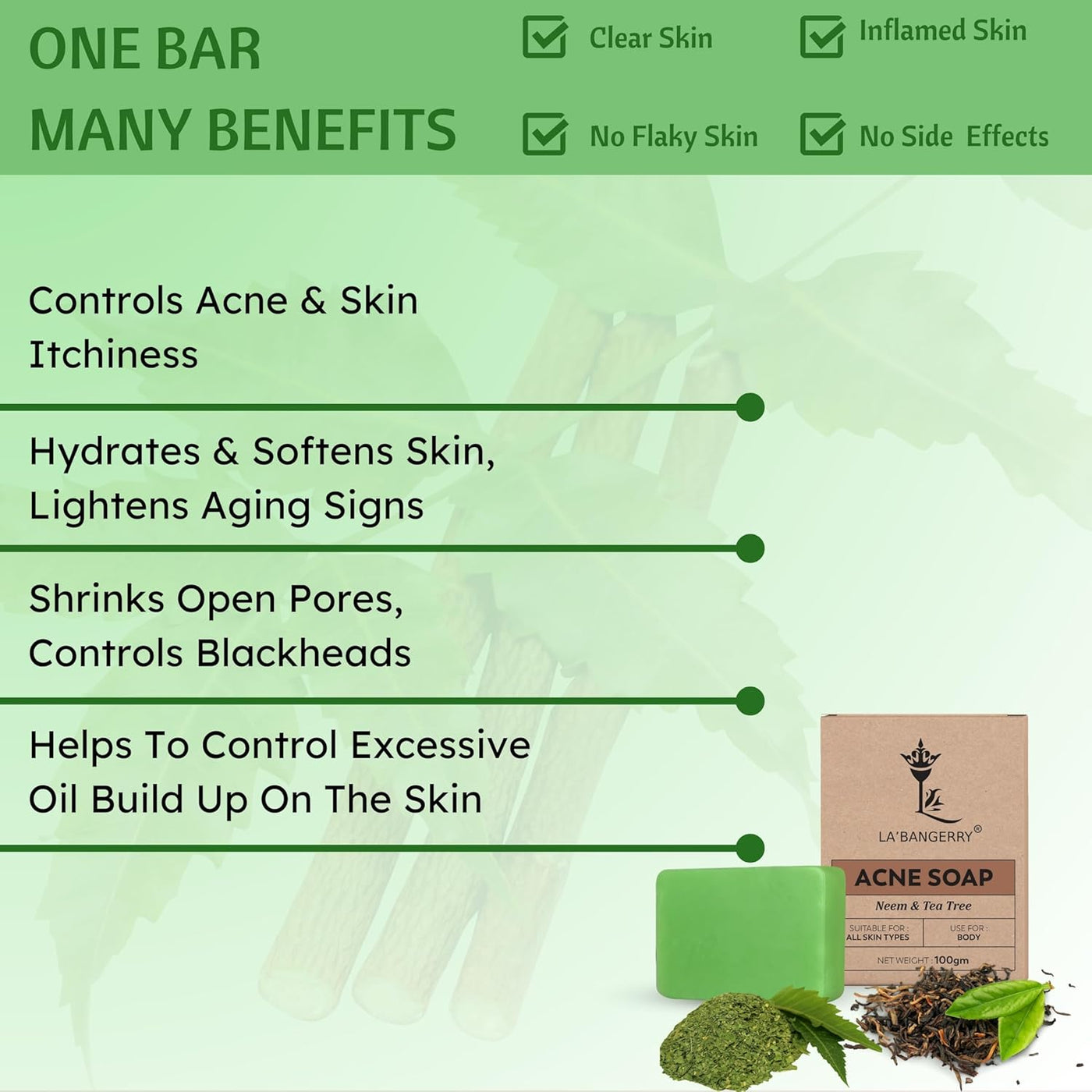 Neem & Tea Tree Acne Soap for Clear Smooth Skin - LA'BANGERRY