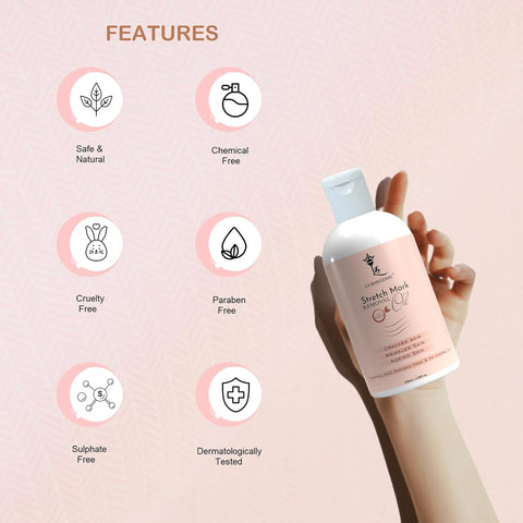 Taking Care of Your Skin During and After Pregnancy is Essential, and our Pregnancy Stretch Mark Oil is Specially Formulated to Provide The Nourishment and Elasticity Your Skin Needs. Enriched with Natural Oils and Botanical Extracts, This Gentle Yet Effective Oil Helps Improve Skin Hydration, Making It Supple and Resilient Against Stretching.